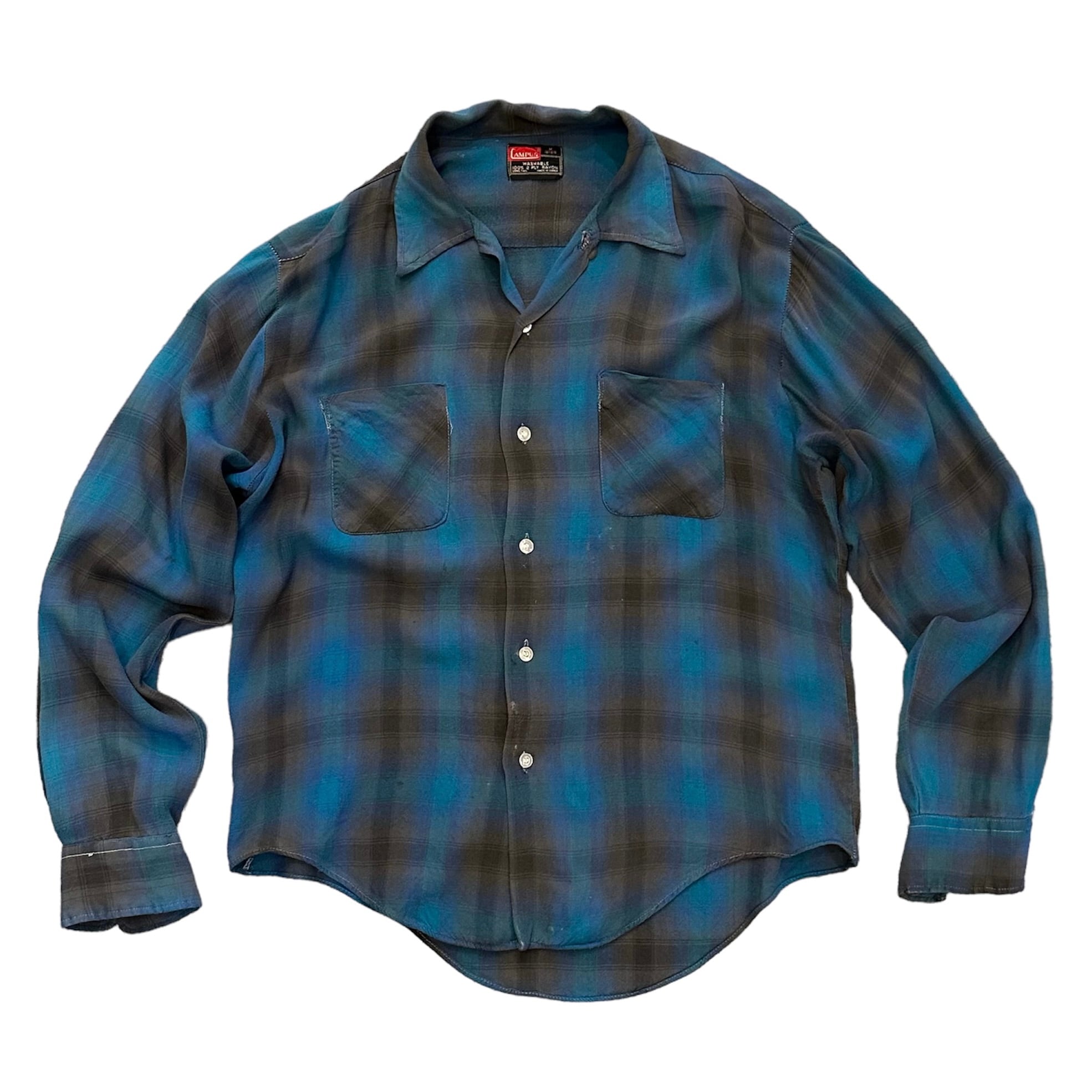 1960's CAMPUS L/S Ombre Checked Rayon Shirt