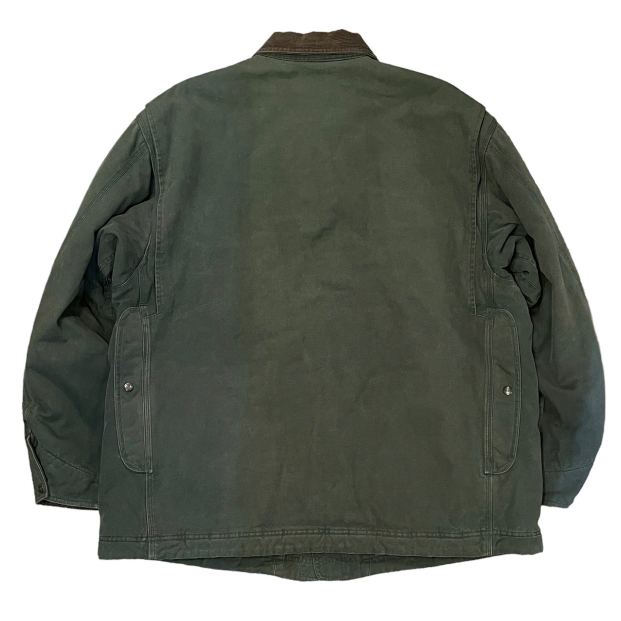 カーハートのようなヘビーオンスのダック生地ではなく肩が張り過ぎないキャンバス地